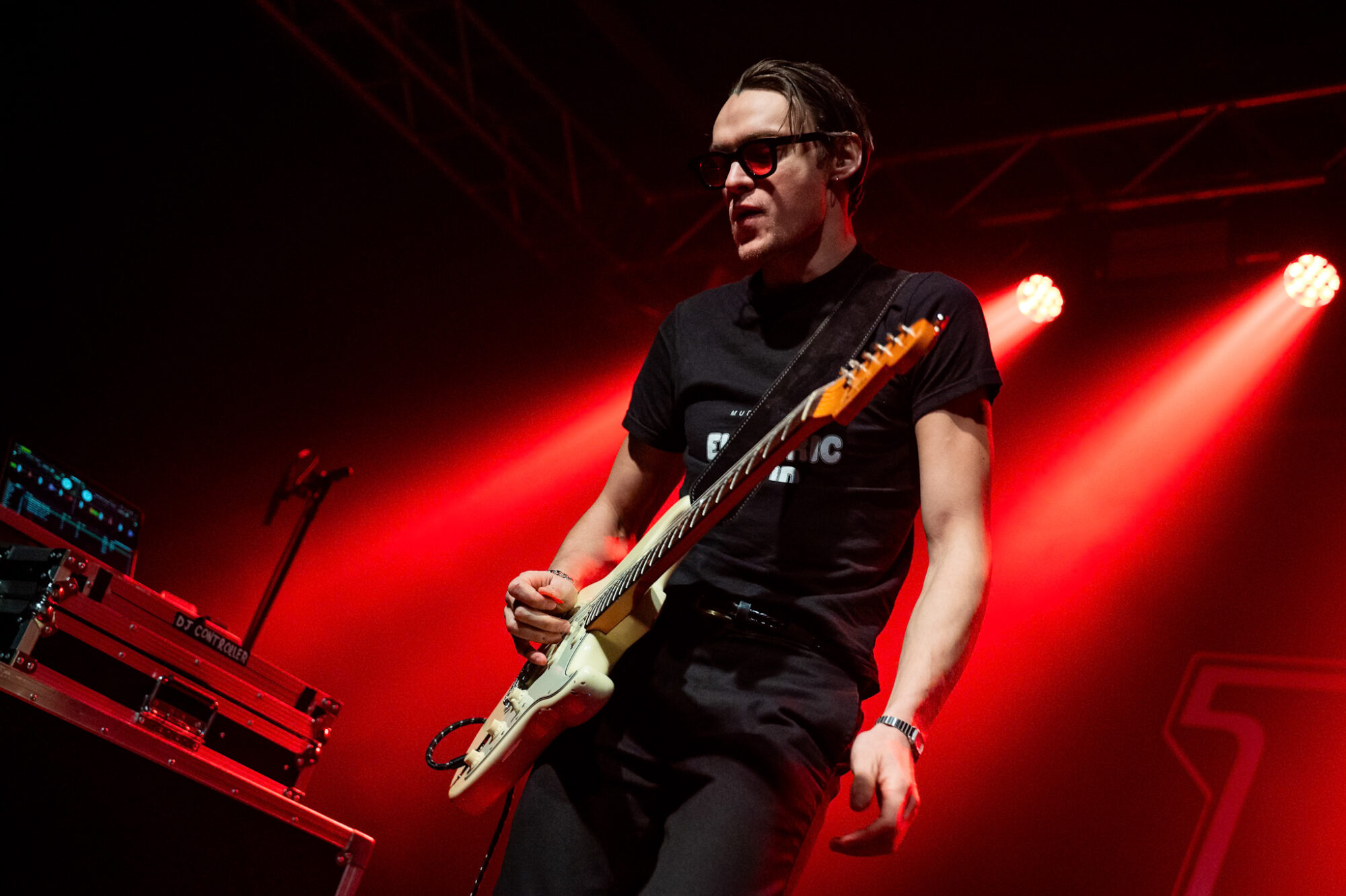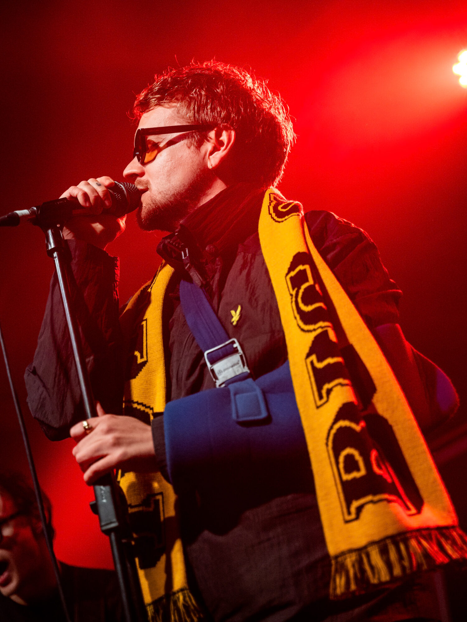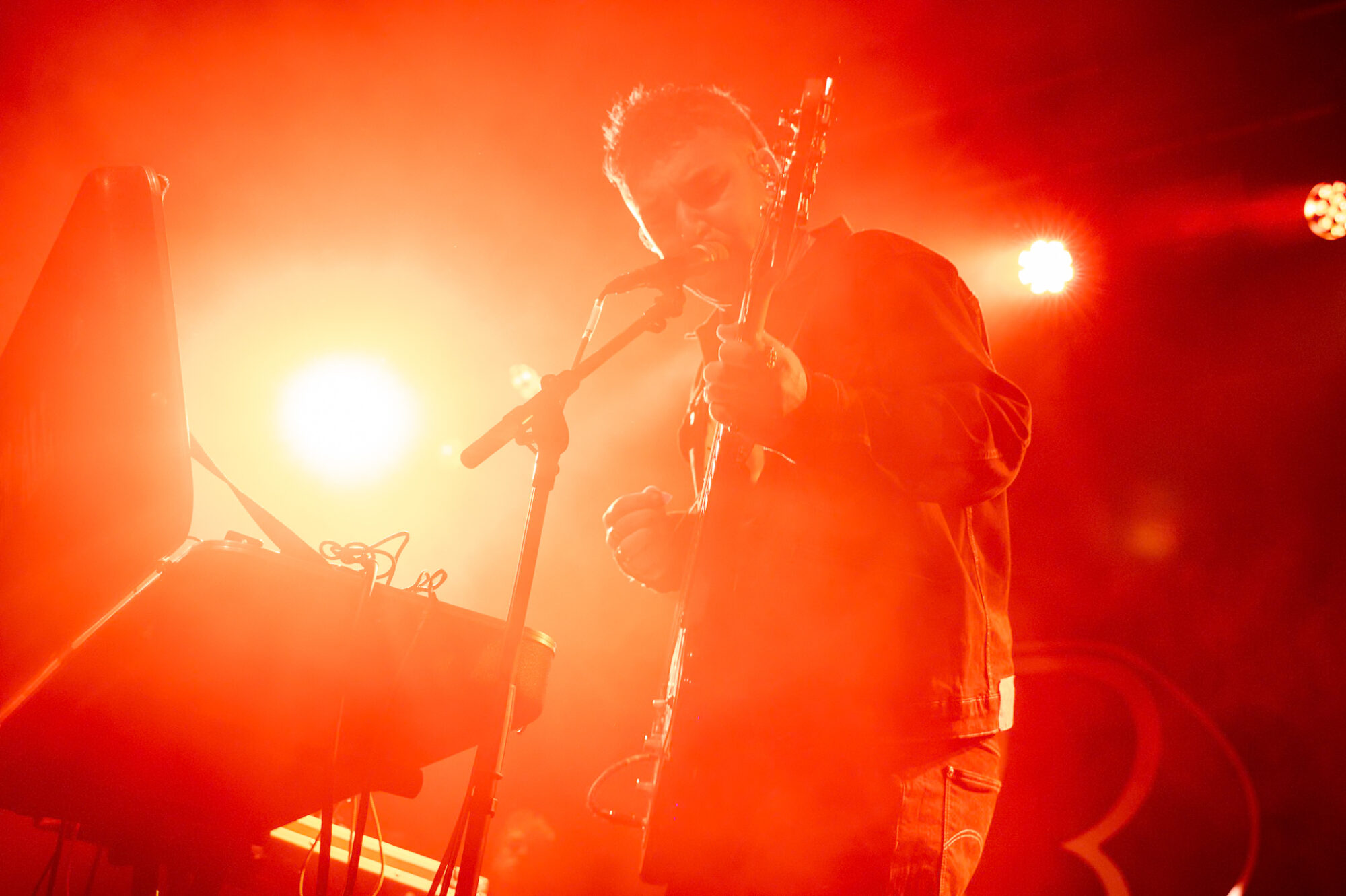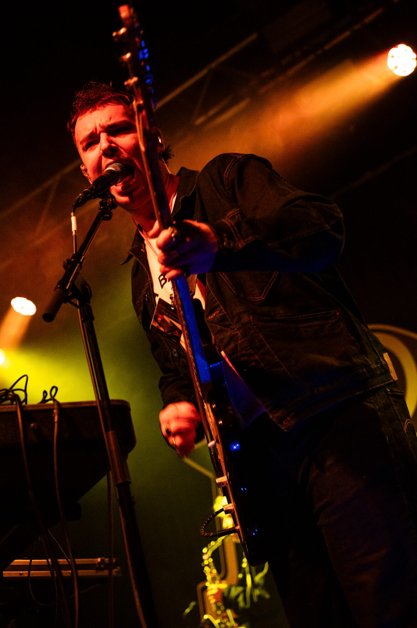 Good Health Good Good Wealth have been talked about by those in the know for a couple of years having been one of This Feeling’s ‘Big In 2024’ bands. The 2025 release of their debut album ‘This Time Next Year We’ll Be Millionaires’ has cemented their reputation as a band that, very soon, will be selling out places like Stylus in their own right. A seven track album, one song for each day of the week, a musical tale of the week in the life of singer/songwriter Bruce Breakey. Tonight Breakey takes to the stage with left arm in a sling following an accident earlier this month but that doesn’t stop him, together with multi-instrumentalist Simon Kuzmickas on guitar and technical wizardry delivering an opening set that is truly mesmerising. The word has spread about Good Health Good Wealth and Stylus is already packed out by the time they walk on stage at bang on 7:30. A glorious blend of spoken word, breakbeats, some indie-pop, garage dance and subtle but sublime guitar work. Beautiful but at the same time in your face ‘The Cafe’, ‘This Time Next Year …’ and the wonderful dedication to Breakey’s dad that is ‘Beautiful Boy’, a tale of unconditional love and support, have the crowd completely hooked in, swaying, absorbed in the moment. Whilst Good Health Good Wealth’s songs are deeply personal most in the room tonight will feel a connection to a good number of those played. Thirty minutes is too short for a band such as this but, as openers on a three band bill, that’s all they get. Those thirty minutes have however cast a spell over this West Yorkshire crowd and left an atmosphere that is now buzzing with anticipation for what the rest of the gig will deliver.