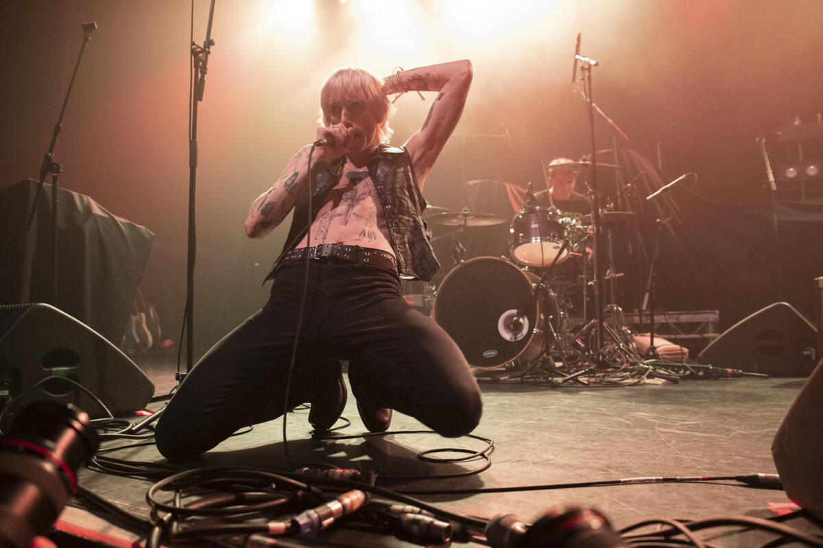 As always mention must be made of the support bands and tonight saw two cracking sets from two very different bands. Openers Dr Dr  made a seriously good impresiion. With just a couple of singles under their belt they walked on stage like they owned the place, and so they should. Oozing confidence singer Fred Farrell would give 1970’s Iggy a run for his money both in looks, vocals and stage presence. Backed by an incredibly tight delivery of guitar, drums and bass Dr Dr hammer out a superb set of heavy, glam rock influenced punk that quickly captured those present this early – and it was a decent number. Check out singles Sid & Bella and Black Gold and show Dr Dr some support. They’re certainly going places.