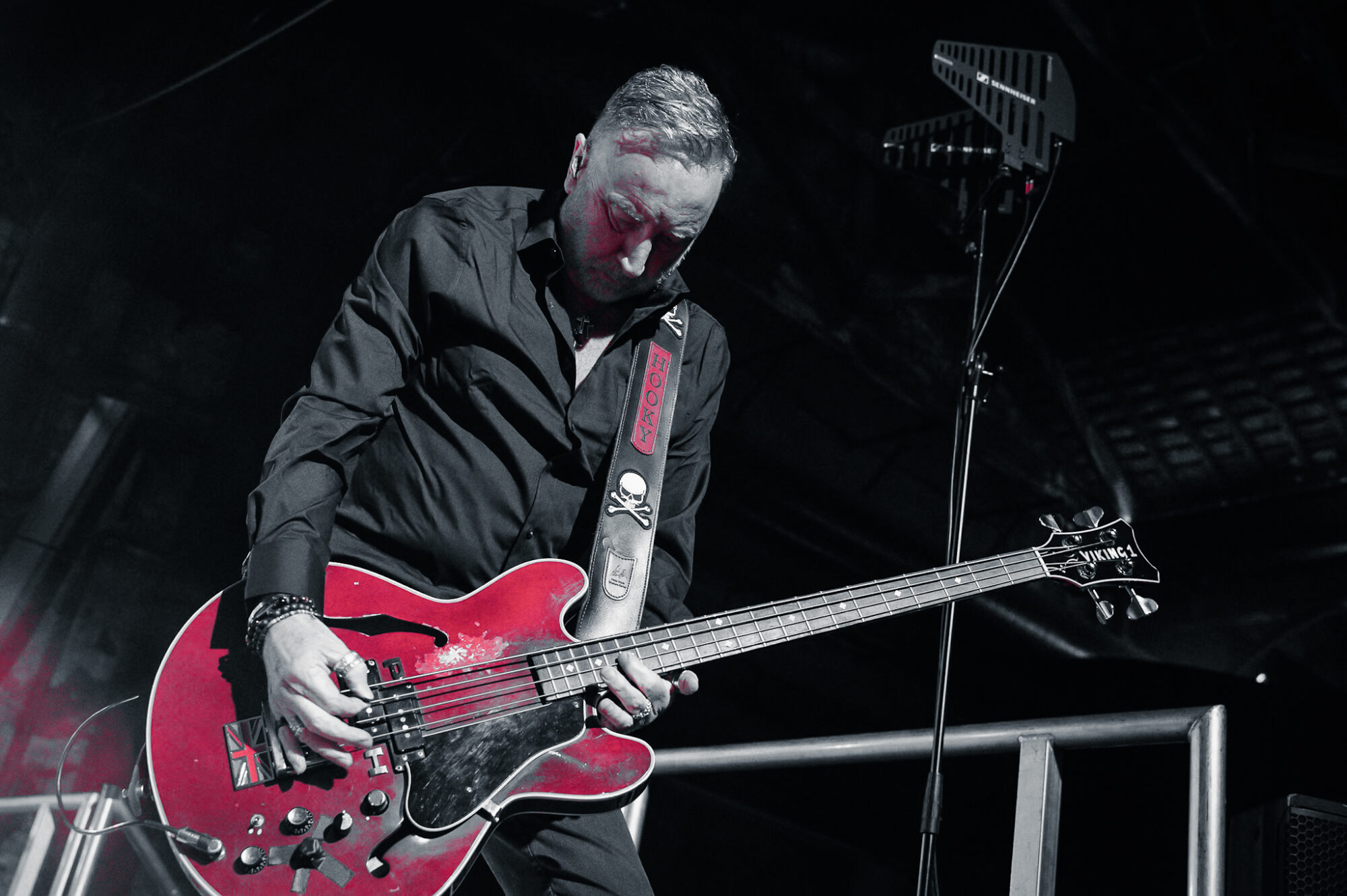 Peter Hook & The Light stroll on stage and from the opening keyboard notes of ‘Crystal’ we know this is going to be a great gig. ‘Get Ready’ is played in full, in order. ‘Crystal’ and ’60 Miles An Hour’ full of those distinctive signature riffs from Hooky’s low slung bass, complemented by extra bass from son Jack,  shimmering guitar work from David Potts, and irresistible drum beats from Paul Kehoe. ‘Turn My Way’ turns into a fan singalong and not by just a few. ‘Rock The Shack’ is a powerful onslaught of slicing guitar with a huge nod to some really early Joy Division. Live ‘Get Ready’ certainly hits home with more power than the studio output. Perhaps the only downside to playing an album in order is that there’s little/no room for surprises. We know exactly what’s coming next but even so to hear songs that in the past have rarely/never been heard in a live setting makes it special for any New Order fan. And handing a significant amount of the vocal duties over to David Potts works perfectly, his voice a much closer match to Bernard Sumner’s. Album complete Hooky dedicates the next number to Leanardo DiCaprio and we’re treated to a storming version of ‘Brutal’ before the massive dance beats of ‘Here To Stay’ has Boiler Shop bouncing to close the first half of this remarkable gig.