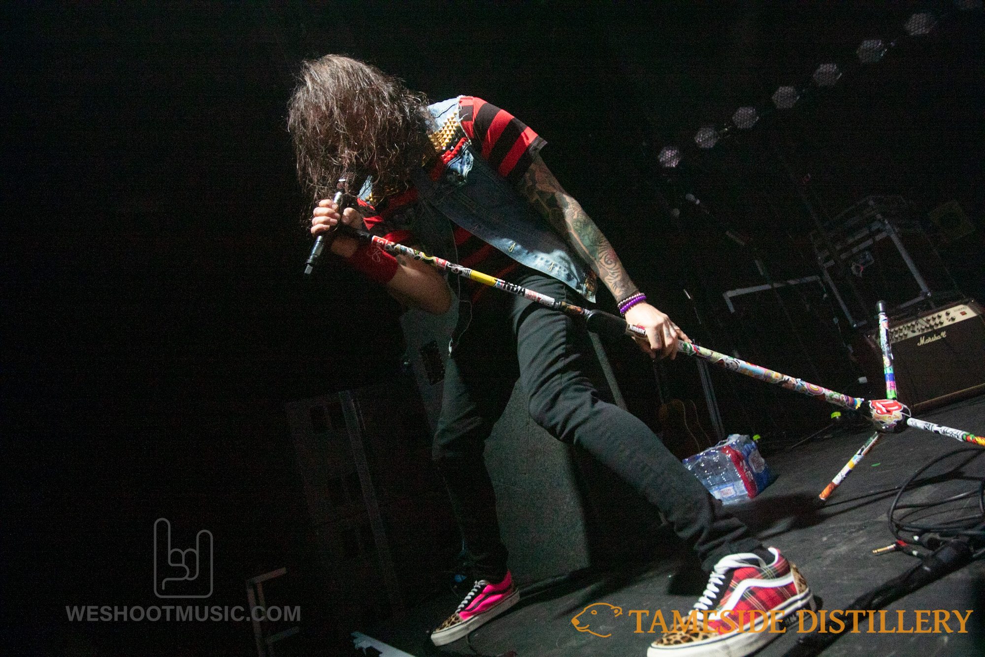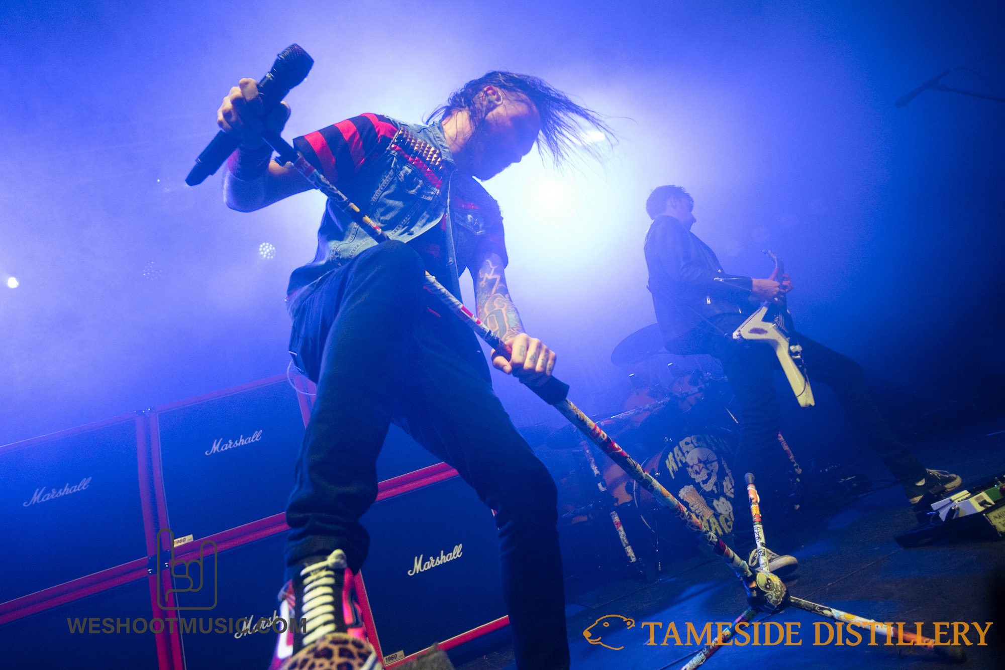 Into the gig at Manchester Academy I went, and on came the Wagons kicking off with Fe Fi Fo Fum and the adrenaline fuelled Baz jumping around the stage to this banger. The crowd were bouncing already! Shortly followed by “In it Together” then “China Plates” Baz is throwing his mic stand around and over his head (I am a pro at mic stand dodging now) and I was running around trying to track Baz with my lens.